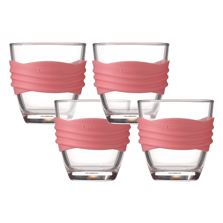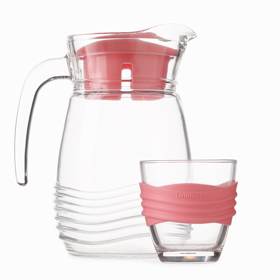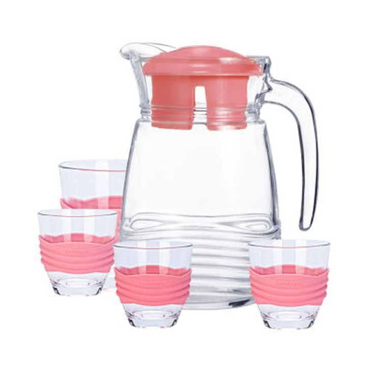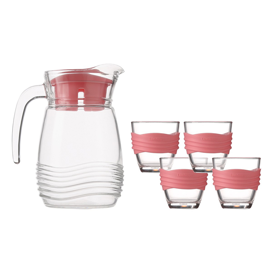 Giới thiệu sản phẩm Bộ bình ly thủy tinh Luminarc Coastline hồng 5 món thân silicon chống nóng